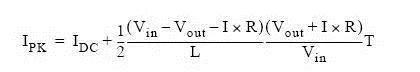 通過上圖我們可以看到,流過電感的最大電流為DC電流加開關峰峰電流的一半。上圖也稱為紋波電流。根據(jù)上述的公式,我們可以計算出峰值電流:
