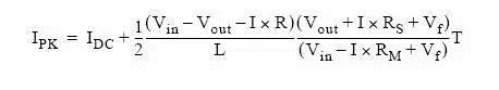 其中,Rs為感應電阻阻抗加電感繞線電阻的阻。Vf 是肖特基二極管的正向壓降。R是Rs加MOSFET導通電阻,R=Rs+Rm。