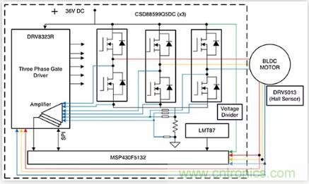 圖 2:基于 TI MSP 430 微控制器的 BLDC 電機(jī)控制示意圖。(圖片來源:Texas Instruments)