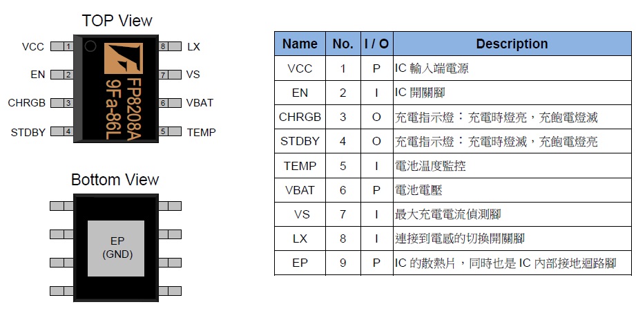 FP8208A 充電時(shí)分成了涓流模式、定電流模式與定電壓模式,另外當(dāng)VCC 腳電壓低於4.6V 時(shí),