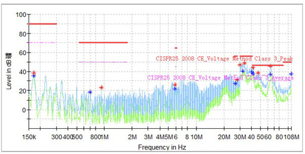 由于電機(jī)控制器傳導(dǎo)發(fā)射低壓側(cè)只要求測試12V/24V電源線,并不直接測試DCDC輸出線,故推測6.1M干擾是DCDC模塊通過