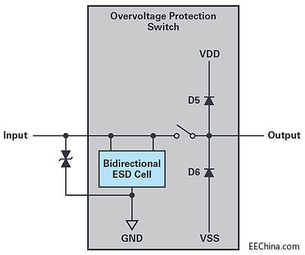 圖2.配有集成式雙向ESD單元的過(guò)壓保護(hù)