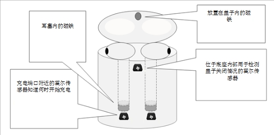如何使用霍爾效應(yīng)傳感器和電流檢測放大器進(jìn)行真無線耳機設(shè)計圖2:無線耳塞傳感器的布置和使用