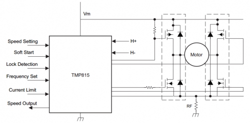 本文介紹的基于 MCU 的驅(qū)動(dòng)電路實(shí)現(xiàn)對(duì)單相無(wú)刷電機(jī)的控制,它會(huì)利用兩個(gè)反饋回路。一個(gè)是內(nèi)層回路,負(fù)責(zé)控制換向;另一個(gè)是外層回路,負(fù)責(zé)控制轉(zhuǎn)速。電機(jī)轉(zhuǎn)速以外部模擬電壓。作為參考,而且會(huì)檢測(cè)出過(guò)流和過(guò)溫故障。