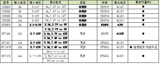DC-DC升壓是很多電子產(chǎn)品常用的電路。隨著集成電路技術(shù)的發(fā)展,大電流,大壓差,DC-DC升壓IC也很成熟。HT8905是一款高效的非同步DC-DC升壓轉(zhuǎn)換器。內(nèi)部集成8A電流MOS管,輸出電壓可調(diào)最高9V,輸入電壓最低2.5V,效率87%以上。SOP8封裝外圍簡單,MOS限流值可調(diào),調(diào)試方便,應(yīng)用廣泛。