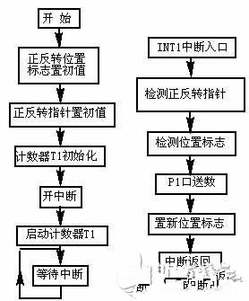 在程序的編制中,要特別注意步進電機在換向時的處理。為使步進電機在換向時能平滑過渡,不至于產(chǎn)生錯步,應(yīng)在每一步中設(shè)置標志位。其中20H單元的各位為步進電機正轉(zhuǎn)標志位;21H單元各位為反轉(zhuǎn)標志位。在正轉(zhuǎn)時,不僅給正轉(zhuǎn)標志位賦值,也同時給反轉(zhuǎn)標志位賦值;在反轉(zhuǎn)時也如此。這樣,當步進電機換向時,就可以上一次的位置作為起點反向運動,避免了電機換向時產(chǎn)生錯步。