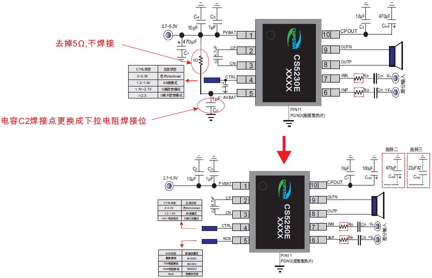 2018年底CS5230一經推出,因其清澈的音質、澎湃的功率、極簡的封裝、極少的外圍、極高的性價比,立刻成為藍牙小音箱首選的音頻功放,廣受歡迎。為滿足消費者對于更大功率更好音質的需求,深圳市永阜康科技有限公司現在大力推廣性能升級版本CS5250,其在CS5230的基礎上,功率由4.8W提升至5.3W、防破音模式1種增加為3種從而適配各式喇叭箱體,進一步推動內置升壓音頻功放的普及應用。