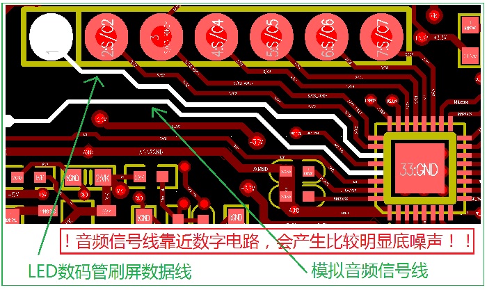 (2). 音頻信號(hào)走線(xiàn)盡量遠(yuǎn)離數(shù)字電路。