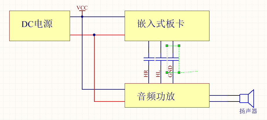 嵌入式板卡的供電由DC電源提供,音頻功放的電源由DC-DC隔離電源提供,這樣就切斷了功放與嵌入式板卡之前的地,行成不了環(huán)地,這樣這個環(huán)地噪聲也就沒有了。