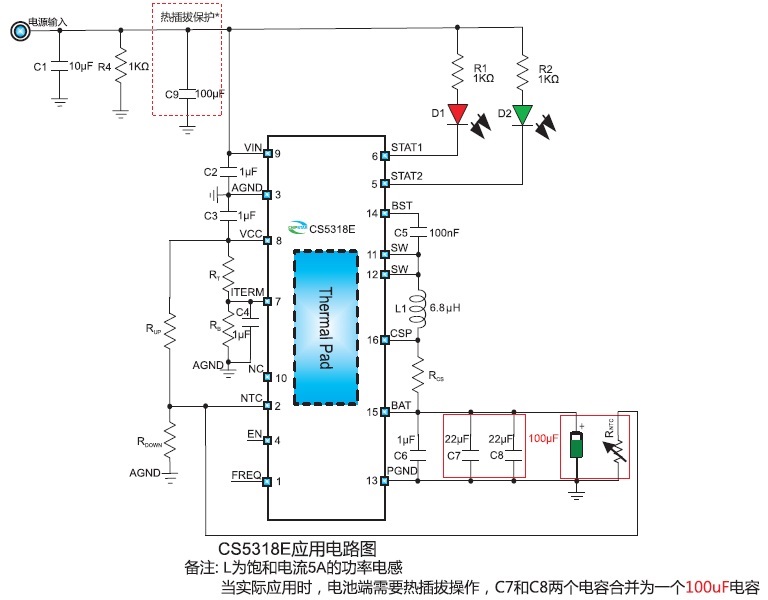 5V USB輸入,最大1.5A充電電流,帶NTC,雙節(jié)鋰電升壓充電管理電路 |
