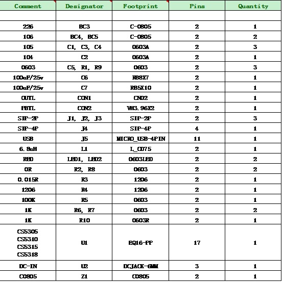 6. CS5305/CS5310/CS5315/CS5318 DEMO板物料清單