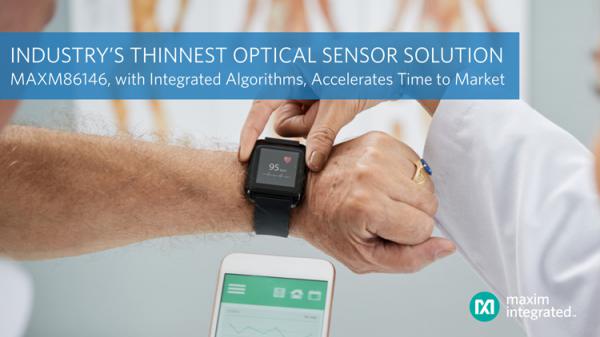 今日,Maxim Integrated Products, Inc (NASDAQ: MXIM) 宣布推出MAXM86146內(nèi)置雙路光電檢測(cè)器的光傳感器方案,該器件為業(yè)界最薄的解決方案,幫助設(shè)計(jì)者快速、輕松地設(shè)計(jì)可穿戴健康、健身產(chǎn)品。該模塊包含心率和氧飽和度 (SpO2) 監(jiān)測(cè)高級(jí)算法,并支持活動(dòng)能力分級(jí),為用戶(hù)提供真正的交鑰匙方案。器件尺寸小、易于設(shè)計(jì),以更小的空間實(shí)現(xiàn)生物檢測(cè)創(chuàng)新設(shè)計(jì),加速高精度、連續(xù)監(jiān)測(cè)設(shè)備的開(kāi)發(fā)進(jìn)程。