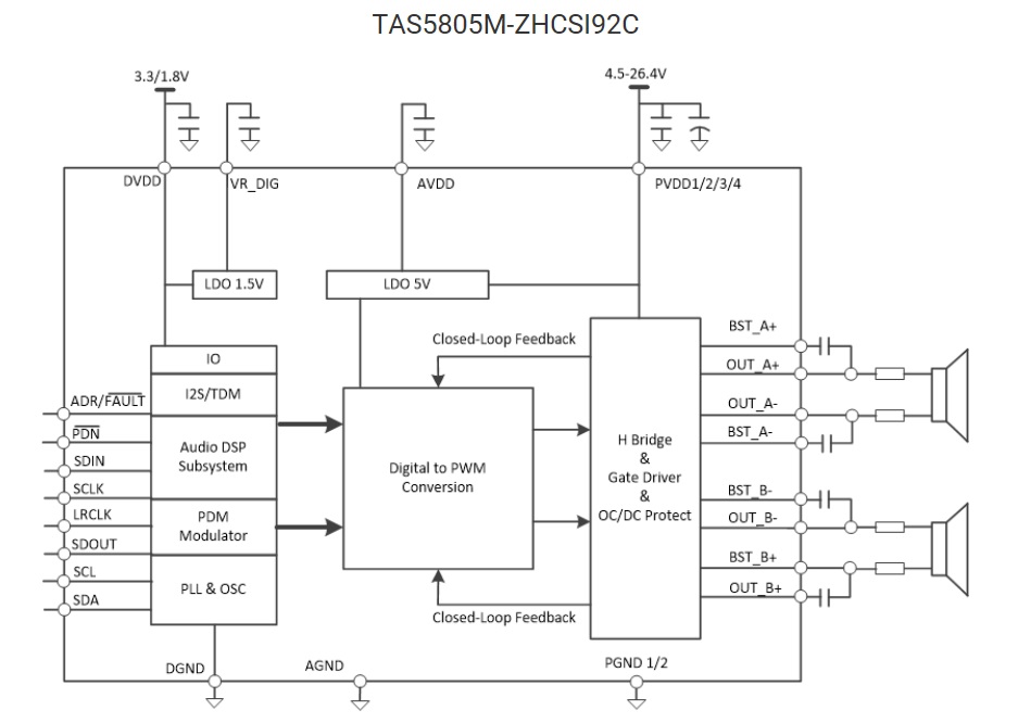 – PVDD:4.5V 至26.4V