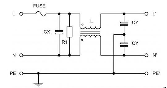 圖1:典型的模塊化EMI濾波電路