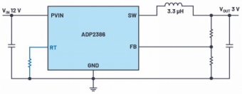 圖1.ADP2386降壓變換器,其開關(guān)頻率由電阻RT設(shè)置