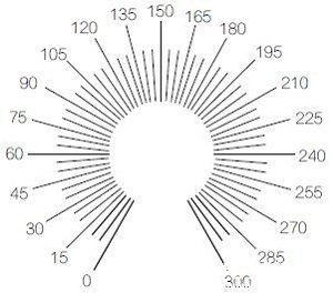 由于衰減時間常數(shù)隨著被測元件的無功值呈線性變化,所測電容值或電感值將與振蕩周期呈線性關(guān)系,并且因此與R9軸角呈線性關(guān)系。通過在R9上應(yīng)用合適的刻度標(biāo)記并參照幾個已知的電容值和電感值對電路進(jìn)行校準(zhǔn),便可繪制出校準(zhǔn)圖表,以便用來確定任何元件值。圖3顯示了R9的刻度標(biāo)記圖,該圖包含在可下載的示例校準(zhǔn)包內(nèi)(見文章末尾)。