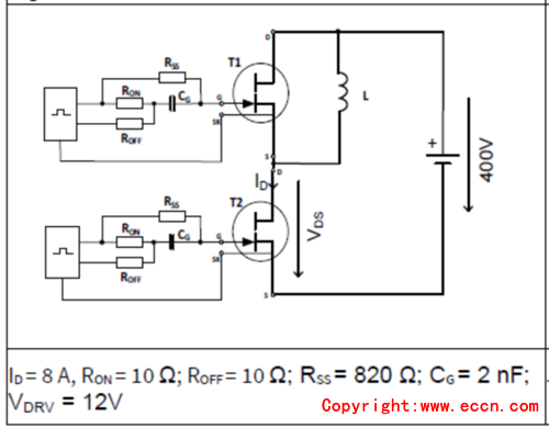 圖1. IGT40R070D1 E8220電感負(fù)載開關(guān)時(shí)間測(cè)試電路