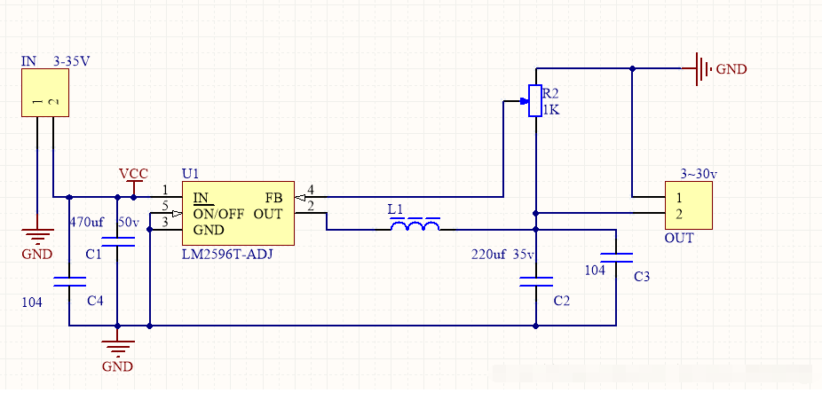 順帶介紹一下LM2596.LM2596系列是德州儀器(TI)生產(chǎn)的3A電流輸出降壓開關(guān)型集成穩(wěn)壓芯片,它內(nèi)含固定頻率振蕩器(150KHZ)和基準(zhǔn)穩(wěn)壓器(1.23v),并具有完善的保護(hù)電路、電流限制、熱關(guān)斷電路等。利用該器件只需極少的外圍器件便可構(gòu)成高效穩(wěn)壓電路。提供的有:3.3V、5V、12V及可調(diào)(-ADJ)等多個電壓檔次產(chǎn)品。有關(guān)電路直接下載datasheet即可知道。我自己用過的電路如下: