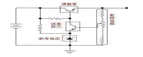 讓我們繼續(xù):如果我們用一個(gè)三極管或者場(chǎng)效應(yīng)管,來(lái)代替圖中的可變阻器,并通過(guò)檢測(cè)輸出電壓的大小,來(lái)控制這個(gè)“變阻器”阻值的大小,使輸出電壓保持恒定,這樣我們就實(shí)現(xiàn)了穩(wěn)壓的目的。這個(gè)三極管或者場(chǎng)效應(yīng)管是用來(lái)調(diào)整電壓輸出大小的,所以叫做調(diào)整管。