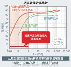 另外,新產(chǎn)品通過(guò)采用新型控制方式,同時(shí)具備了通常被認(rèn)為存在矛盾關(guān)系的高速響應(yīng)和高效率優(yōu)勢(shì)。不僅在高負(fù)載時(shí)的功率轉(zhuǎn)換效率高達(dá)92%(輸出電流1A時(shí)),而且在輕負(fù)載時(shí)的功率轉(zhuǎn)換效率也達(dá)到85%(1mA時(shí)),從輕負(fù)載到高負(fù)載都實(shí)現(xiàn)了非常出色的高效率,這將非常有助于進(jìn)一步降低行駛時(shí)和引擎停止時(shí)的功耗。