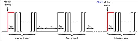 除上述特點(diǎn)以外,M8601還具備獨(dú)特的防誤報(bào)功能。當(dāng)M8601配置在人體運(yùn)動(dòng)檢測(cè)工作模式條件下,一旦芯片檢測(cè)到人體移動(dòng)信號(hào)并且通過(guò)INT/DOCI接口發(fā)出Motion中斷,外部單片機(jī)識(shí)別到中斷信號(hào)之后無(wú)需重新配置,可以通過(guò)INT/DOCI接口立刻進(jìn)行數(shù)據(jù)采集得到原始PIR信號(hào)。然后,單片機(jī)再按照預(yù)先設(shè)定的算法,對(duì)INT/DOCI接口采集到的PIR原始數(shù)據(jù)以及之前收到的Motion中斷信號(hào)進(jìn)行邏輯運(yùn)算,可以進(jìn)一步判斷是否為真實(shí)的人體運(yùn)動(dòng)信號(hào)還是誤報(bào)。芯片的這一功能在很多需要防誤報(bào)的應(yīng)用場(chǎng)景中非常重要,如監(jiān)控?cái)z像機(jī)、高端遠(yuǎn)程監(jiān)控報(bào)警器、紅外攝像機(jī)等等。詳細(xì)工作的時(shí)序圖如下圖2。