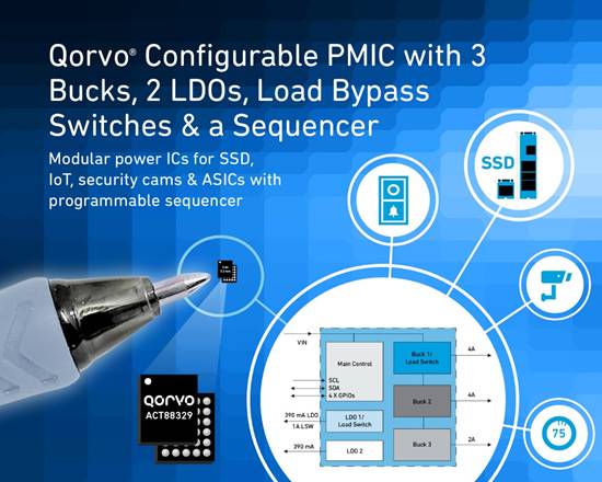 移動應(yīng)用、基礎(chǔ)設(shè)施與航空航天、國防應(yīng)用中 RF 解決方案的領(lǐng)先供應(yīng)商 Qorvo®, Inc.(納斯達(dá)克代碼:QRVO)今日宣布,推出新一代多重時間可編程電源管理 IC (PMIC)---ACT88327/8/9/1,該電源管理 IC 針對高性能和緊湊設(shè)計進(jìn)行了優(yōu)化。
