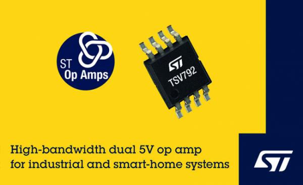 意法半導(dǎo)體的TSV792 5V雙運(yùn)算放大器(op amp)具有50MHz的增益帶寬積和低輸入失調(diào)電壓、10pA輸入偏置電流等高精度特性。