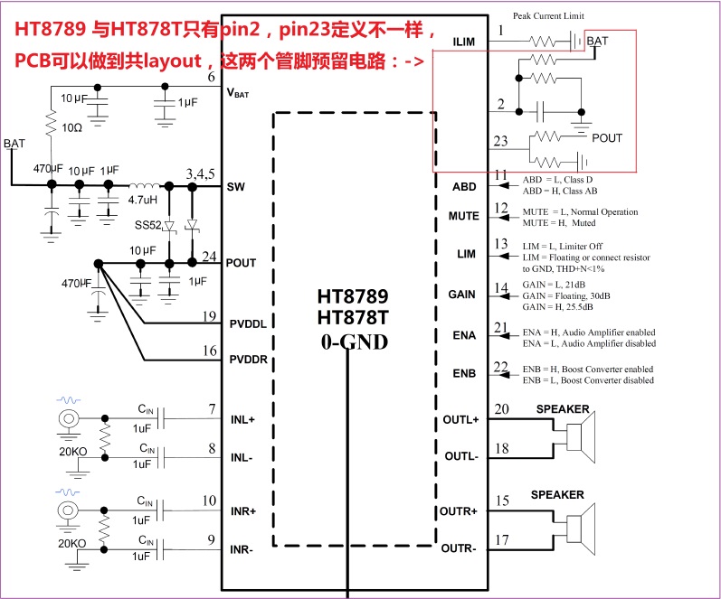 HT878T與HT8789共Layout應(yīng)用原理圖