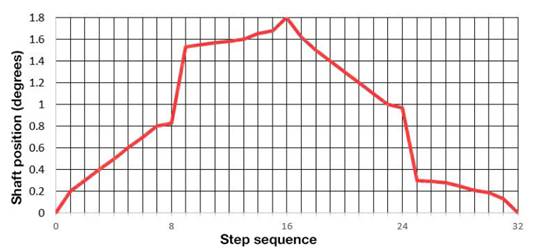 驅(qū)動器衰減模式的選擇在確定系統(tǒng)精度方面也起著重要作用。電流波形中的任何紋波都與所需形狀有偏差,表現(xiàn)為振動和精度差。只要有可能,就應(yīng)在慢速衰減模式下而不是快速或混合衰減下運行步進電機,以減少紋波。然而,由于反電動勢,僅具有緩慢衰減的電流波形在高速工作下會失真。因此,可以適應(yīng)高速的慢速衰減模式是提高精度的最佳方法。步進電機的平穩(wěn)運行應(yīng)導(dǎo)致圖3a中所示的單調(diào)位置精度圖,而不是圖3b中所示的步進角的突然變化。