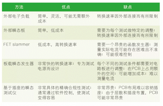 您可以使用多種方法來測試選定電源的負載瞬態(tài)響應(yīng),但是每種方法各有利弊。這里我將比較以下選項:外部電子負載、外部瞬態(tài)板、場效應(yīng)晶體管(FET)Slammer、板載瞬態(tài)發(fā)生器和基于插座的瞬態(tài)測試儀。