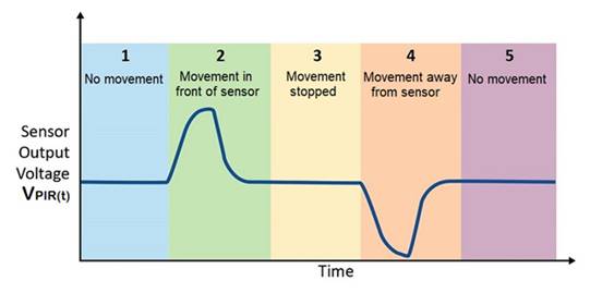 圖1.PIR傳感器運(yùn)動(dòng)檢測(cè)原理