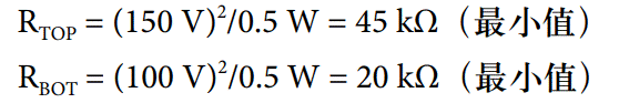 150 V,RBOT達到 100 V。使用額定功率為 1 /2瓦的 2512 電阻,設(shè)計必須將每個電阻器的功耗(V2/R) 限制在 0.5 W