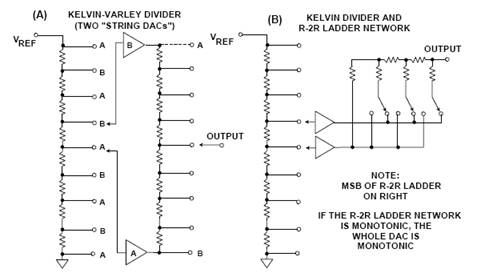 圖3:分段電流輸出DAC: (A)電阻方案;(B)電流源方案