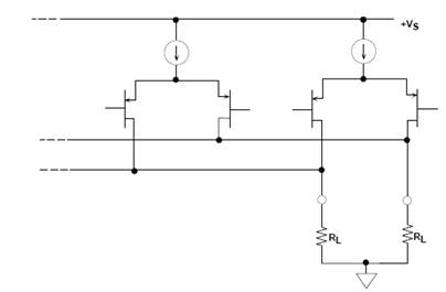 TxDAC系列中的基本電流開關單元由圖6所示的差分PMOS晶體管對組成。這些差分對通過低電平邏輯驅動,以便最大程度地降低開關瞬變和時間偏斜。DAC輸出為對稱的差分電流,有助于減少偶數階失真產物(特別是驅動變壓器或運放差分電流電壓轉換器等差分輸出時)。