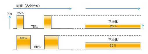 以PWM工作來說明,以S1=ON/S2=OFF將VIN供電時間設(shè)為25%、以S1=OFF/S2=ON將0V(GND)狀態(tài)設(shè)為75%的脈沖周期,當(dāng)該脈沖平均化時將為25%的DC。如果VIN為10V,則Vo將為25%的2.5V。