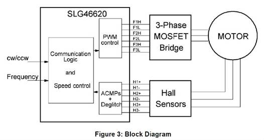 該項目描述了如何使用 GreenPAK? 控制三相無刷直流電機。