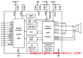 Up to eight devices can share a common bus via I2S/TDM and I2C interfaces. The device is available in a30-ball, 0.4 mm pitch CSP for a compact PCB footprint.