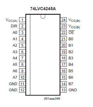 第二種:利用特定的電平轉(zhuǎn)換芯片,將3.3V和5V進(jìn)行轉(zhuǎn)換。例如74LVC4245A,74ALVC164245這兩款芯片用的