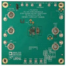 控制器的一個替代方案是單芯片解決方案,其中FET在轉換器IC內部。例如,LTC3310S單片降壓調節(jié)器(IC尺寸為3 mm×3 mm)可實現(xiàn)負載點解決方案,單個IC最多可提供10 A電流,并聯(lián)多個IC可提供20 A電流。這些IC分別如圖6和圖12所示。