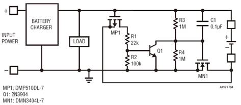 請注意,不論什么情況,電池充電器和負(fù)載電壓都不會出現(xiàn)負(fù)電壓傳送。
