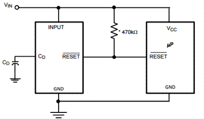 電壓監(jiān)控器與電壓檢測器不同,其通常使用外部電容器具有可編程輸出延遲,使其變得極其靈活。它們可用于正確排序現(xiàn)場可編程門陣列(FPGA)應(yīng)用中多個電源,或防止系統(tǒng)故障。當(dāng)電源電壓上升到電壓閾值(加上滯后,若適用),這通常會觸發(fā)設(shè)備“取消標(biāo)記”復(fù)位信號并使系統(tǒng)從復(fù)位狀態(tài)返回。然而,由于存在由延遲電容器(CD)產(chǎn)生的延遲,因此在復(fù)位信號取消標(biāo)志之前,電壓必須保持高于電壓閾值及指定時間延遲的滯后。這可防止系統(tǒng)過早地從復(fù)位狀態(tài)返回。