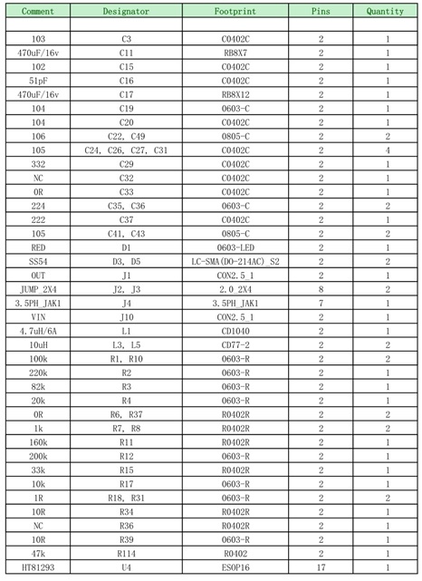 HT81293特有的自適應動態(tài)升壓,能根據(jù)芯片需要輸出功率的大小來對應調(diào)整電源模塊的輸出電壓,極大提高鋰電池的續(xù)航時間;其輸入電流限制功能可設定最大輸入電流,以免因鋰電池瞬間電壓跌落太低造成主控重啟(考慮到功率要求,一般推薦最大輸入電流設定為8A左右);能通過一個主控IO口實現(xiàn)關斷、開啟、防破音開啟/關閉等各種模式的切換,節(jié)省藍牙主控的資源;2檔防破音模式,ACF1寬動態(tài)音量震撼模式適合戶外拉桿音箱,ACF2高保真低失真模式適合便攜式藍牙音箱,兩種模式選擇只需要改動外圍電阻,便可呈現(xiàn)不同風格的音質(zhì)。