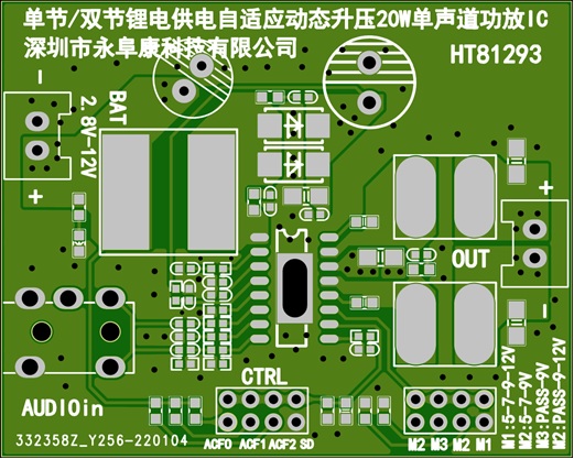 深圳市永阜康科技有限公司順應拉桿音箱以及藍牙小音箱市場音質(zhì)功率升級的需求,推廣一款單節(jié)雙節(jié)鋰電供電內(nèi)置自適應動態(tài)升壓20W單聲道D類功放IC-HT81293。采用最新的BCD工藝,內(nèi)部Boost模塊升壓至12V,已經(jīng)與鉛酸電池/三節(jié)串聯(lián)鋰電池的電壓持平,實現(xiàn)了單節(jié)鋰電供電極致功率輸出。