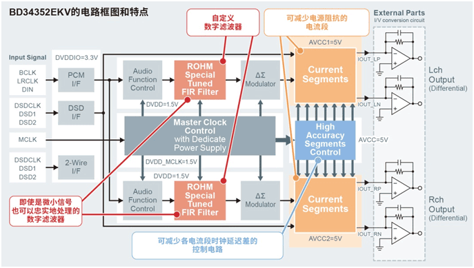 ROHM開發(fā)出高音質(zhì)音響設(shè)備用32位D/A轉(zhuǎn)換器IC“BD34352EKV”