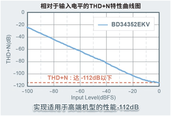 “BD34352EKV”是繼2021年2月推出的MUS-IC™ DAC芯片“BD34301EKV”(量產(chǎn)中)之后,針對更廣泛的音響設(shè)備產(chǎn)品需求而開發(fā)的新產(chǎn)品。不僅繼承了ROHM DAC芯片的基本理念“自然而平穩(wěn)的聲音”,同時,還進行了一些調(diào)整,能夠更強有力地表現(xiàn)出音源中的能量。另外還搭載了高性能數(shù)字濾波器*2(與同為高端機型的“BD34301EKV”中搭載的濾波器具有同等高性能),表現(xiàn)出優(yōu)異的性能參數(shù)(SN比:126dB,THD+N:-112dB),實現(xiàn)了與高端機型用DAC芯片相符的性能。