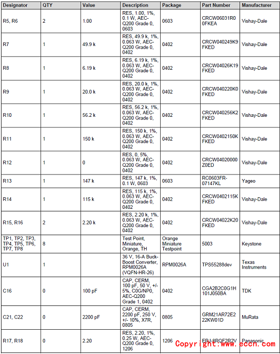 評(píng)估模塊TPS55288EVM-045材料清單: