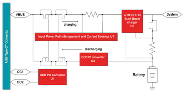 圖 2:BQ25792 全集成降壓升壓充電器簡化了完整的 USB PD 充電解決方案的設(shè)計。(圖片來源:Texas Instruments)