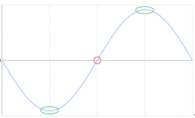 開關導通的時間(電壓保持導通的時間)取決于正弦波上的“位置”。當我們查看正弦波時,我們可以看到變化緩慢(靠近頂部/底部)和變化較快(Y