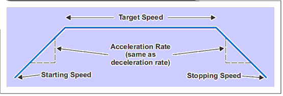 圖 3 顯示了一個(gè)加速/減速過(guò)程,其中,加速和減速速率對(duì)稱。也可以使用非對(duì)稱速率。