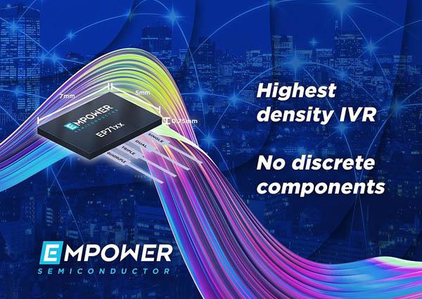 EP71xx 系列的封裝面積僅5mm x 7mm ,高度僅0.7mm ,采用單個(gè) FcCSP 封裝,可提供高達(dá) 12A 的連續(xù)電流和多達(dá) 4 個(gè)穩(wěn)壓器。這不僅可以提升效率,也可以降低各種運(yùn)行條件下的損失。超快速瞬態(tài)響應(yīng),支持通過(guò)負(fù)載階躍進(jìn)行調(diào)節(jié),支持可編程的“ExpressV”按需動(dòng)態(tài)電壓調(diào)節(jié),速率可達(dá) 6mV/ns。速度比同類競(jìng)品快 1000 倍以上,可以實(shí)現(xiàn)快速、無(wú)損的處理器狀態(tài)切換,從而顯著降低處理器能耗。
